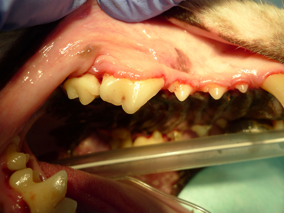 また、歯周病になると痛みのために食欲が低下したり、口臭が強くなることがあり、歯石除去、抜歯などの処置が必要になります。処置は全身麻酔をかけておこないますが、日帰りできますので、